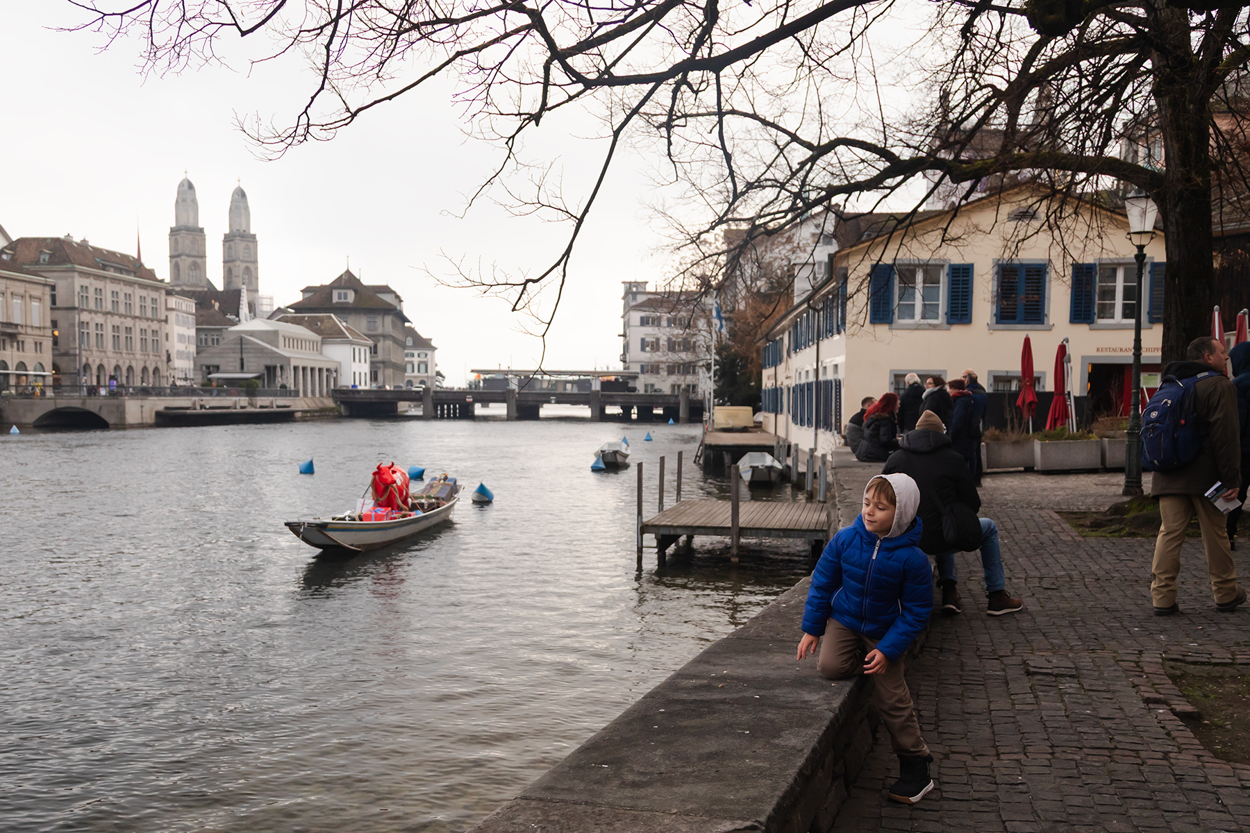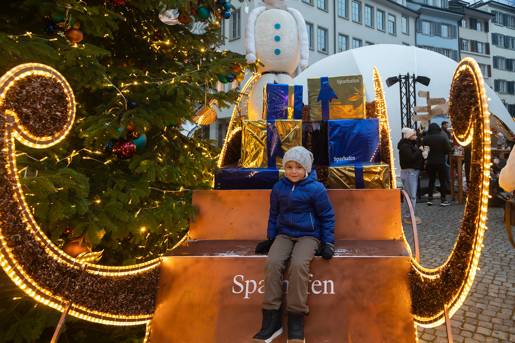 S nearly fell asleep in the warmth, so we ventured back outside to wake him up with another Christmas market stroll and a stop at the Sprungli café for their famous Luxemburgerli (mini macarons).