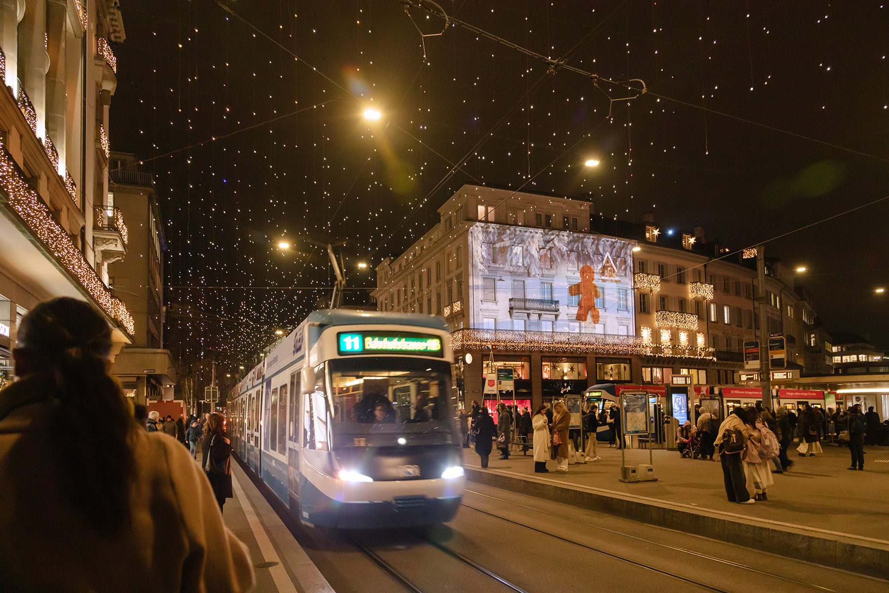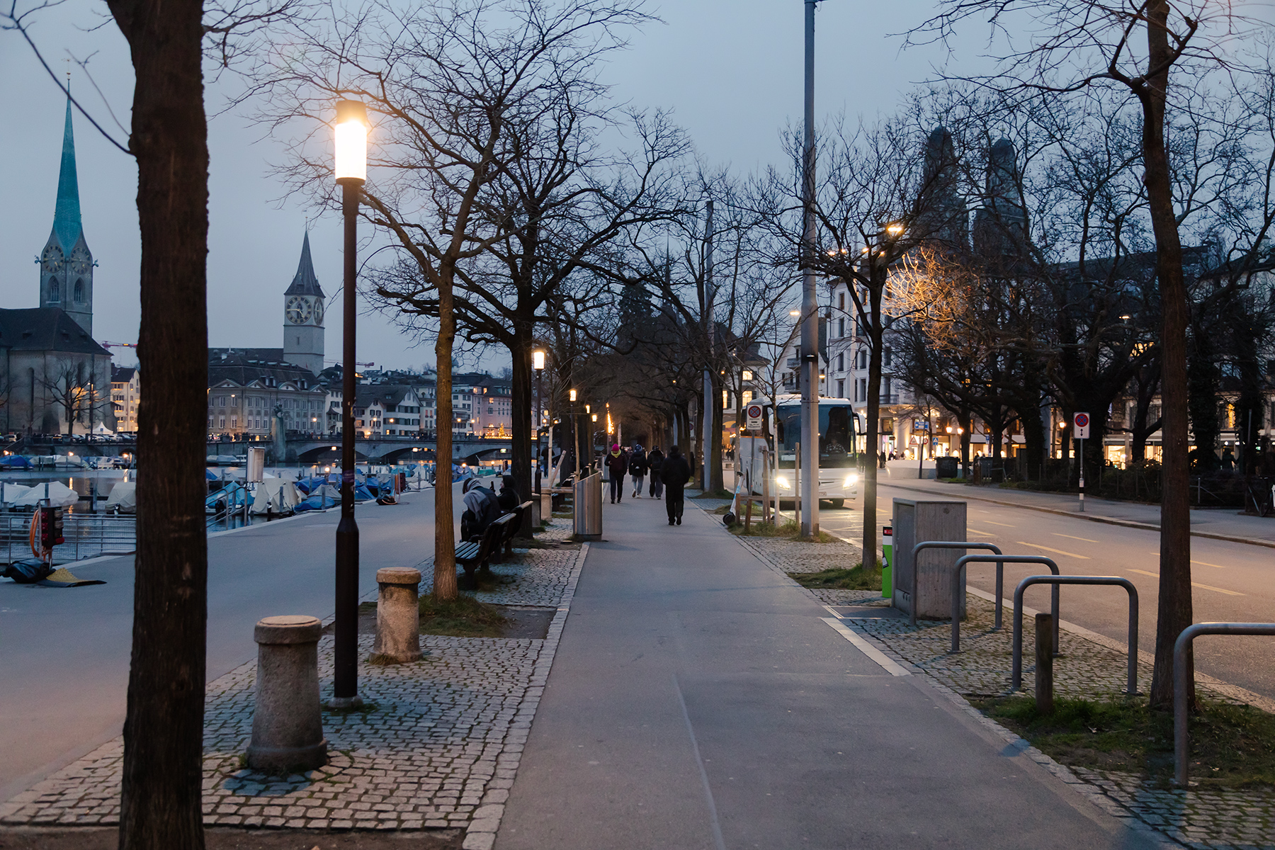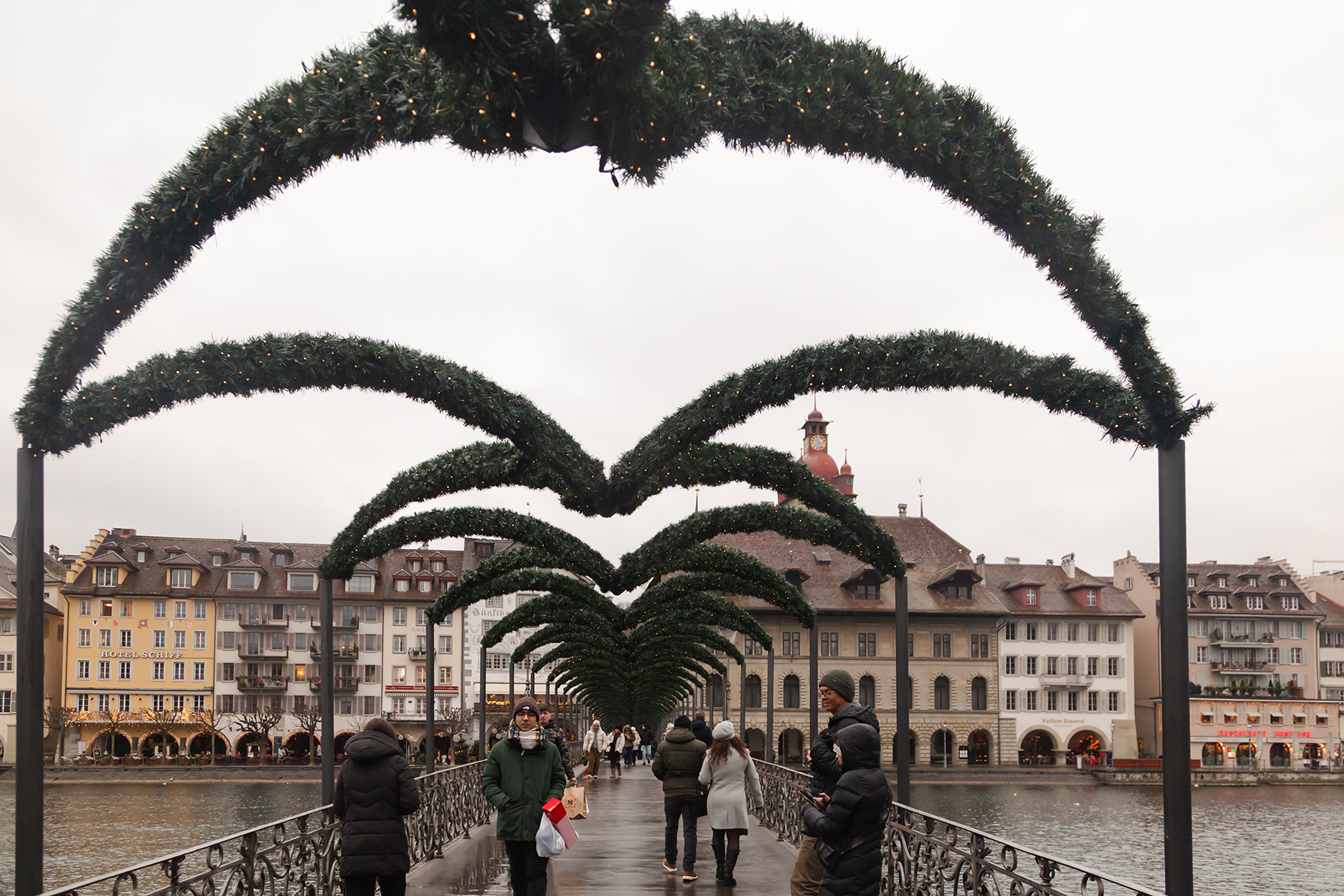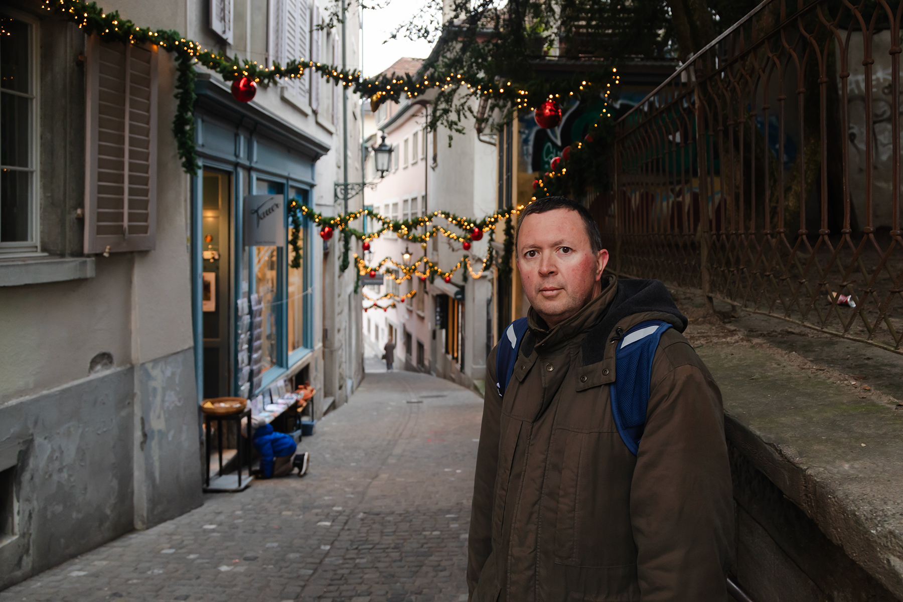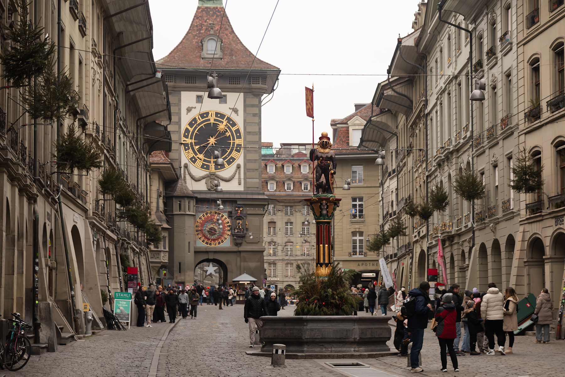 Lunch sorted, we followed Rick Steves’ walking tour through charming streets and viewpoints. Zürich’s river sparkled with clean water, and the city’s 1,200 fountains offered potable water everywhere. The Christmas markets were lively, though the shops felt repetitive, and the prices reminded us constantly that Switzerland is no bargain.