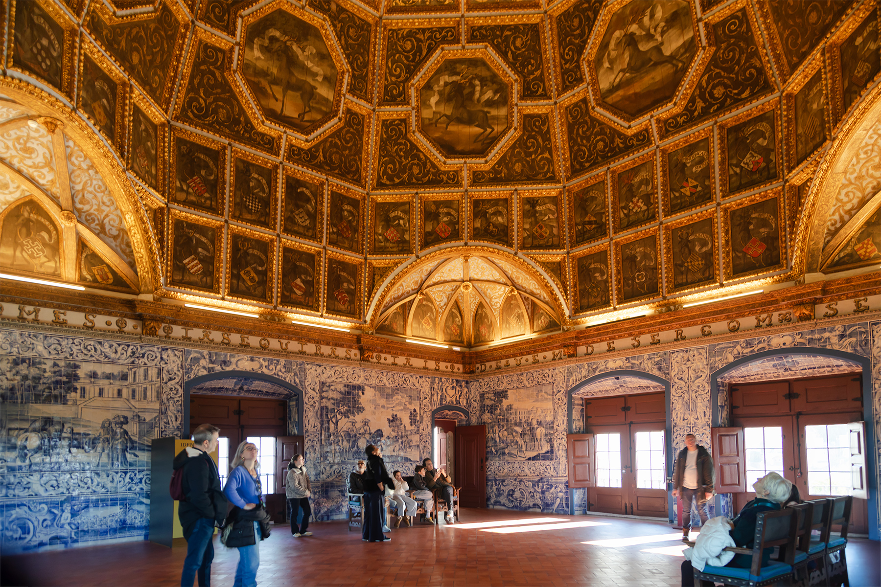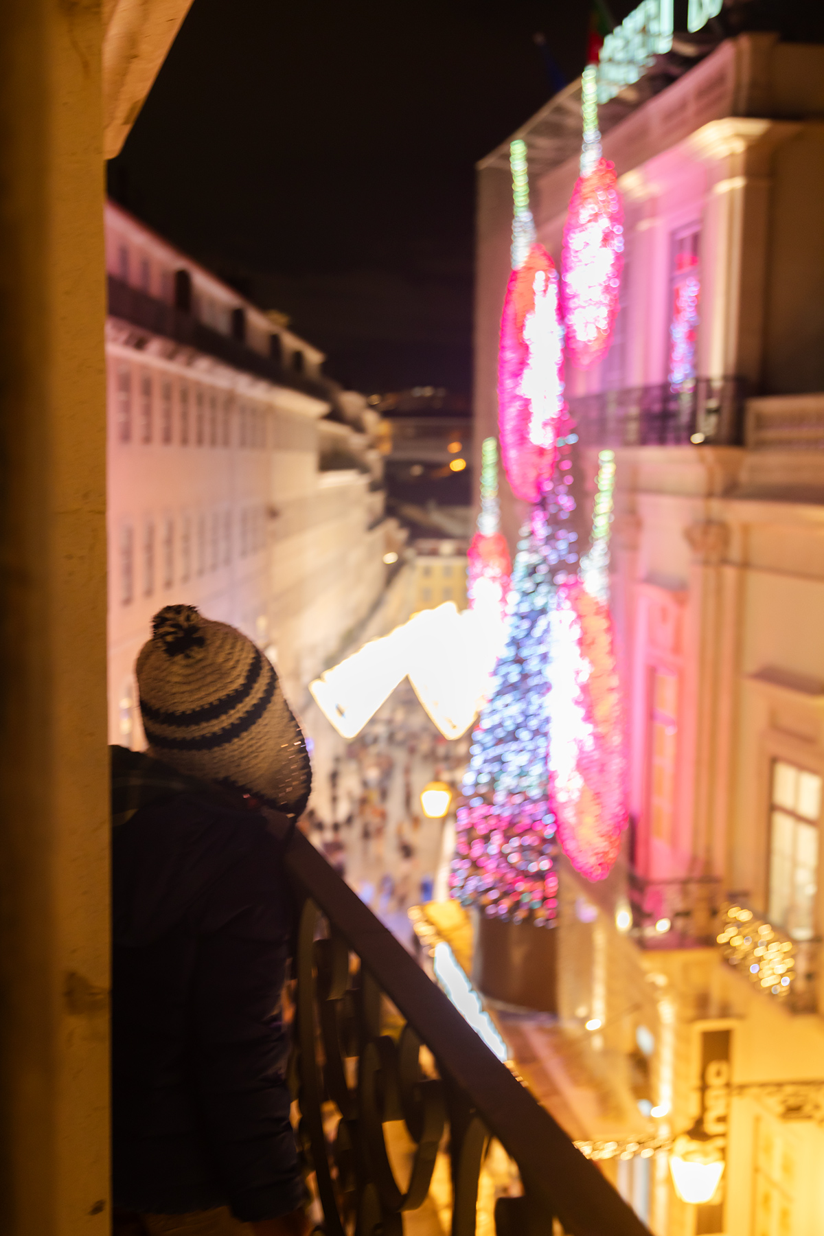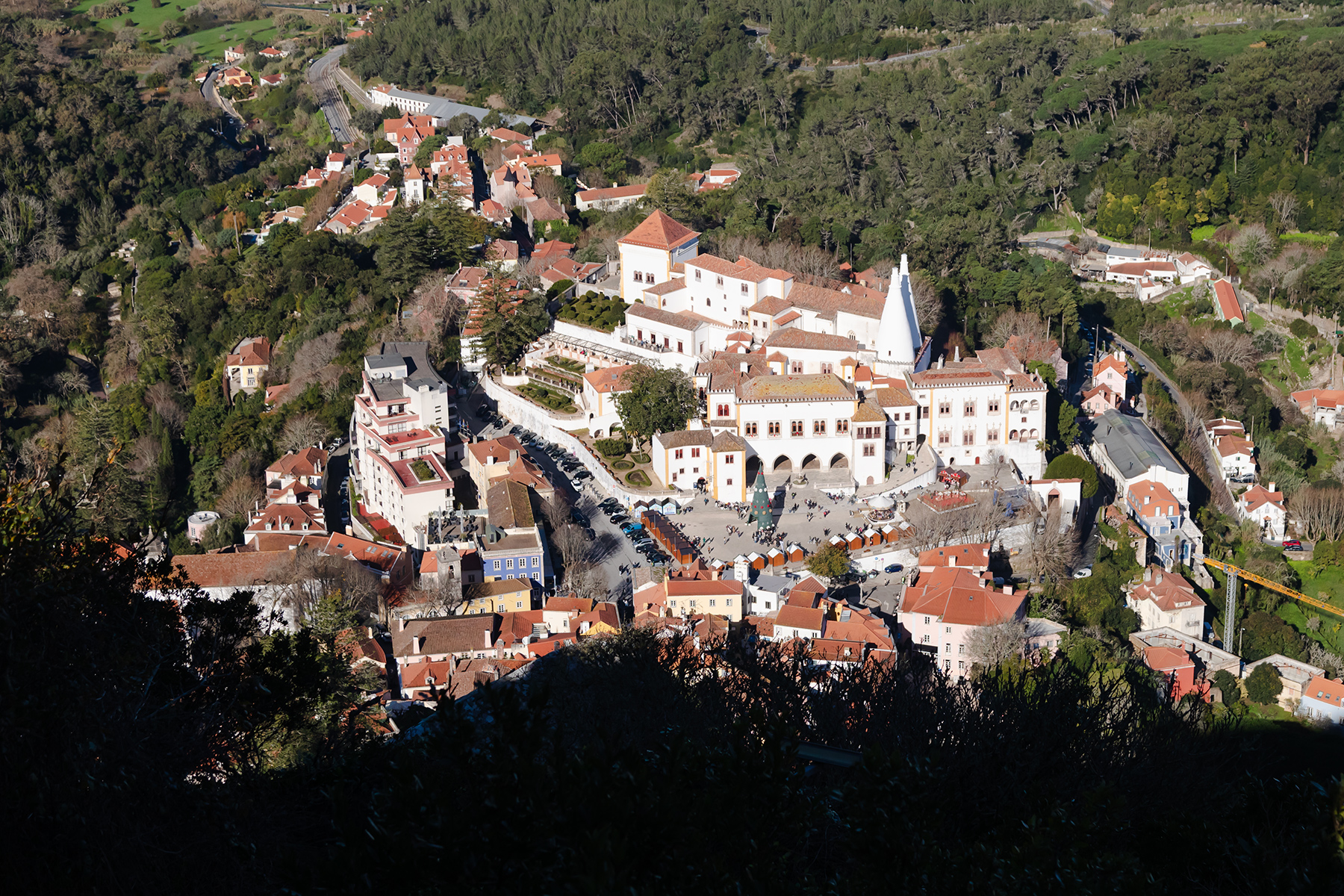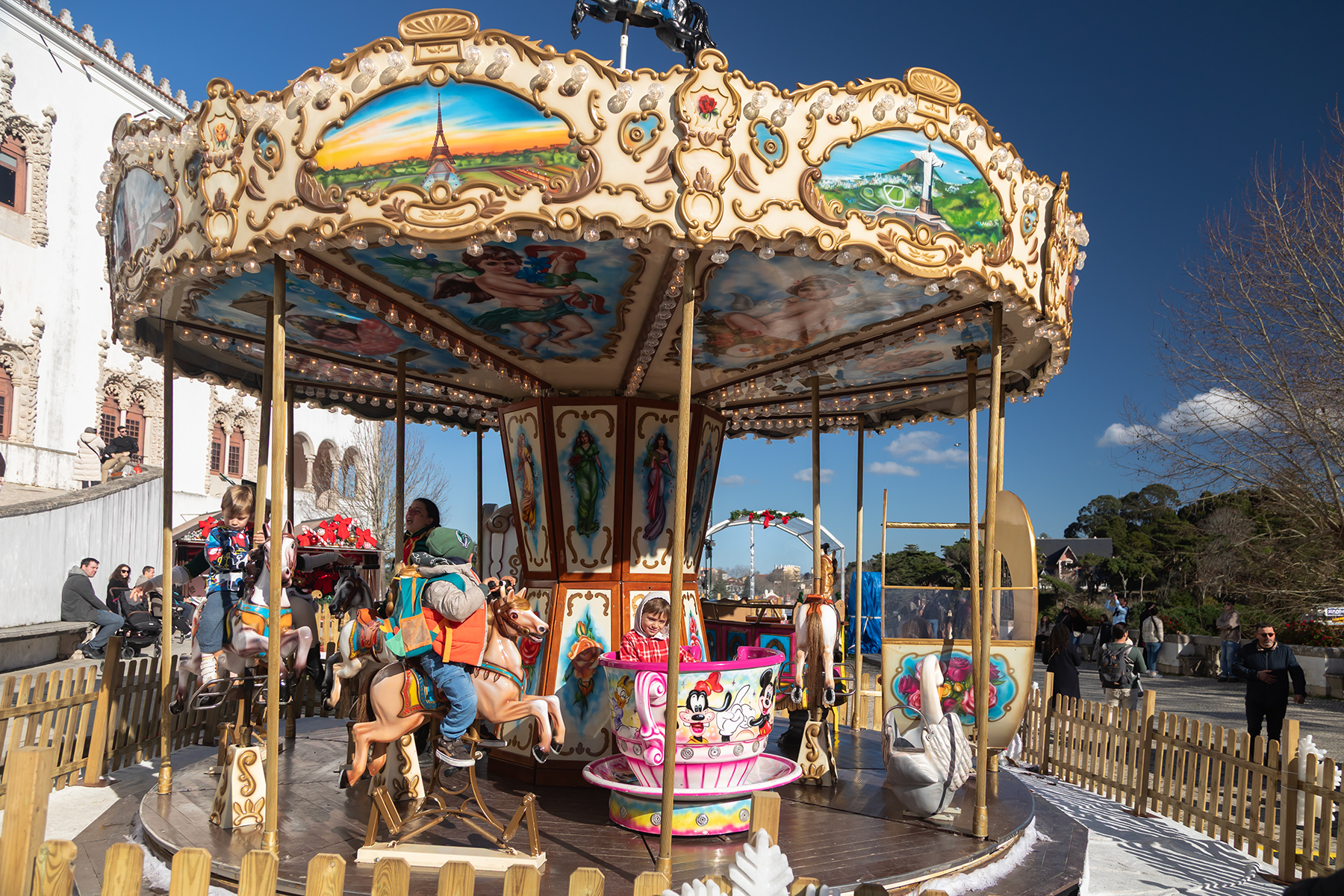 Another half‑hour walk brought us to the National Palace of Sintra, a royal residence for centuries. S was thrilled by a free carousel ride at the Christmas market in front of the palace before we explored inside.