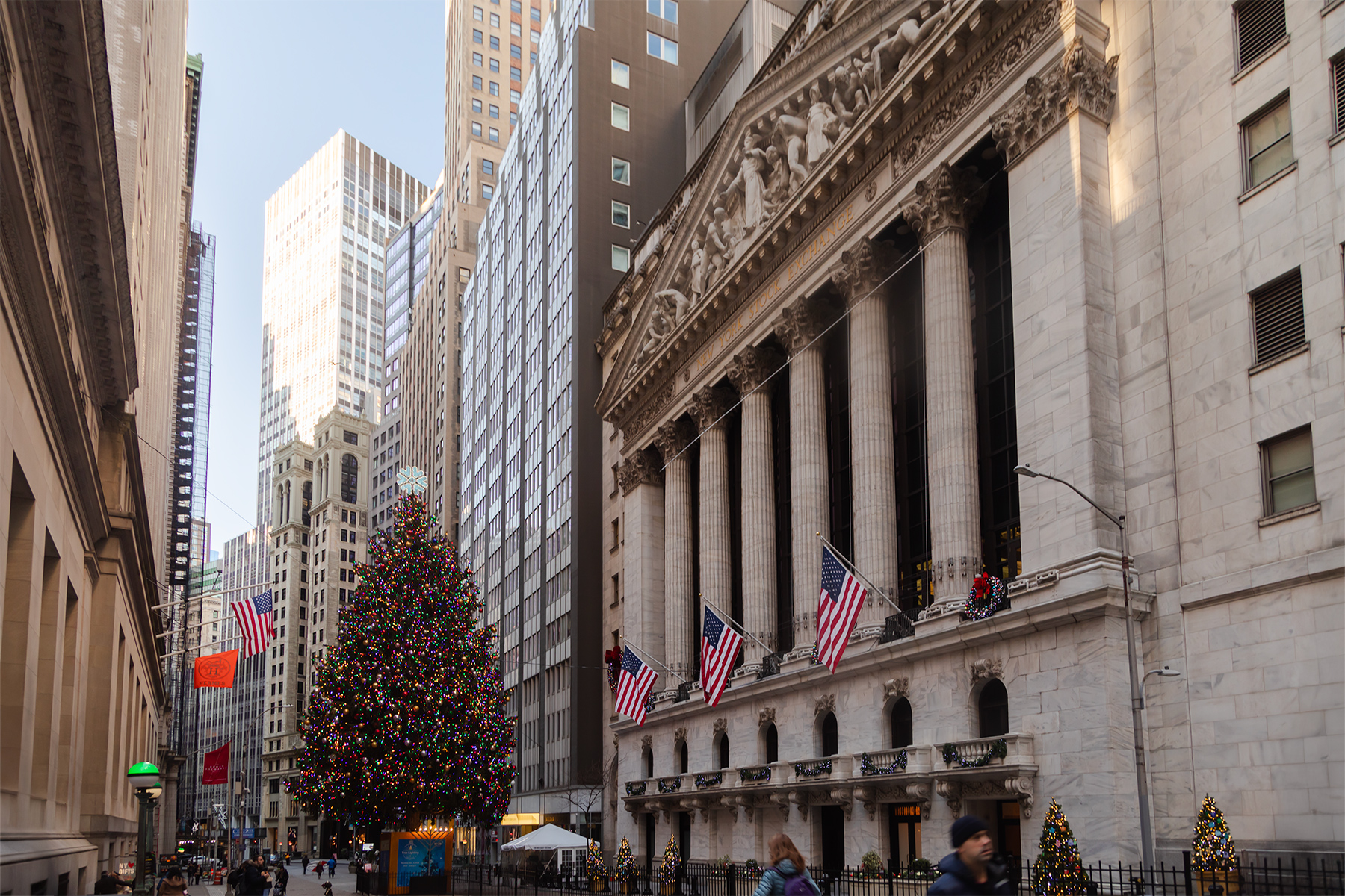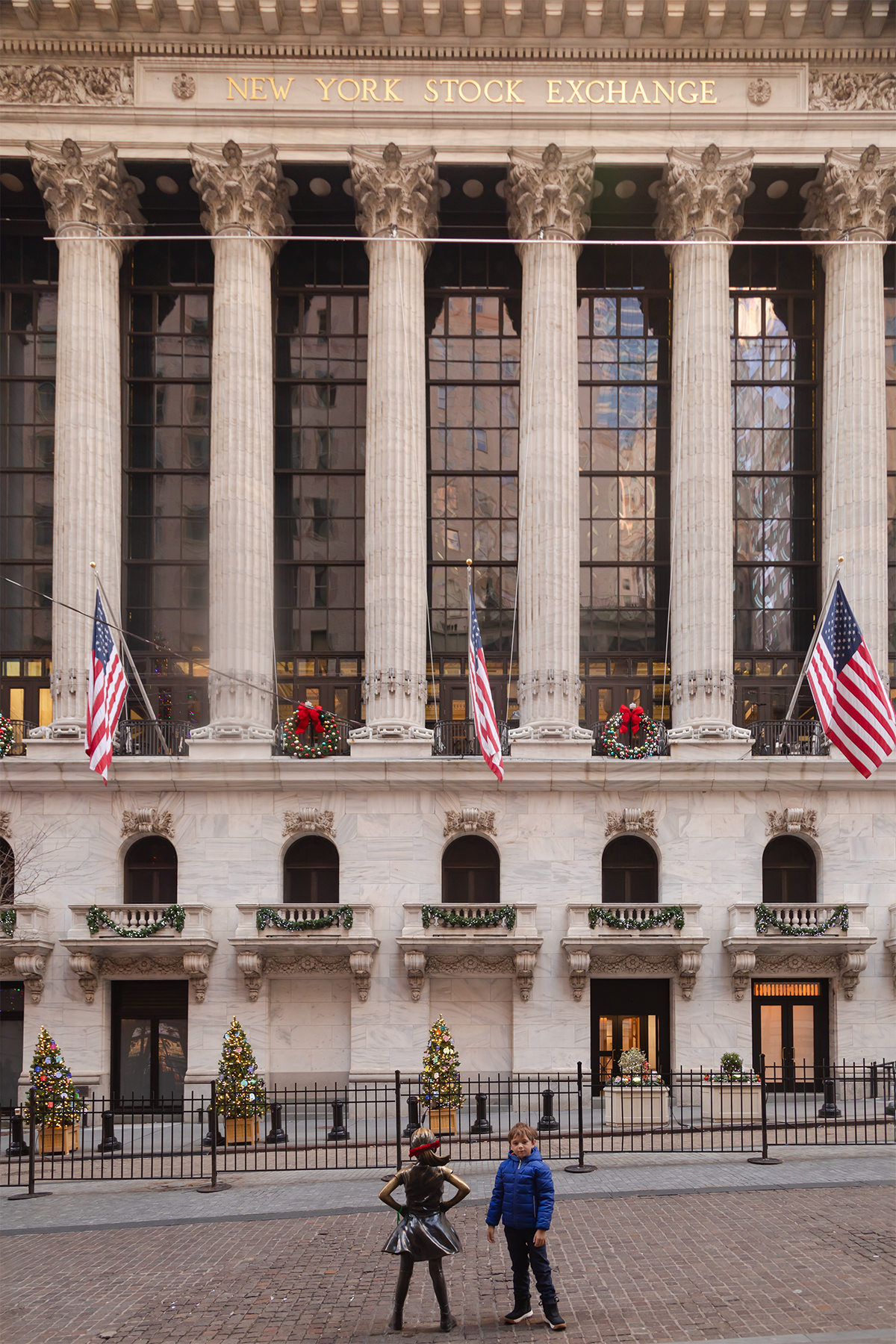 We started our first day with classic New York bagels before wandering down Wall Street to see the New York Stock Exchange Christmas tree.